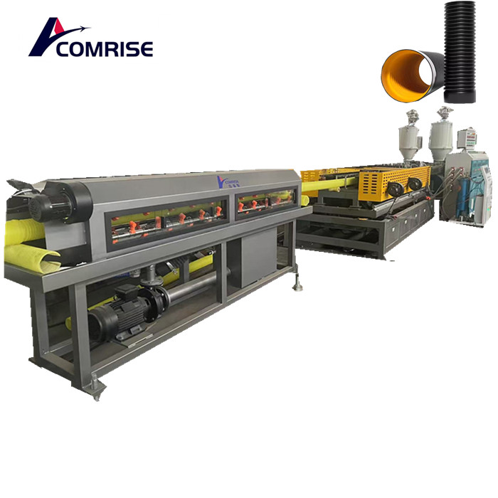Qingdao Comrise Machinery Co., Ltd Καταστρέφουν το μηχάνημα διπλού τοίχου, έτσι ώστε να είναι η παραγωγή της ταχύτητας χύτευσης, το ενιαίο σχήμα, το εσωτερικό και το εξωτερικό του τοίχου. Η ταχύτητα παραγωγής είναι 8-30 μέτρα ανά λεπτό.