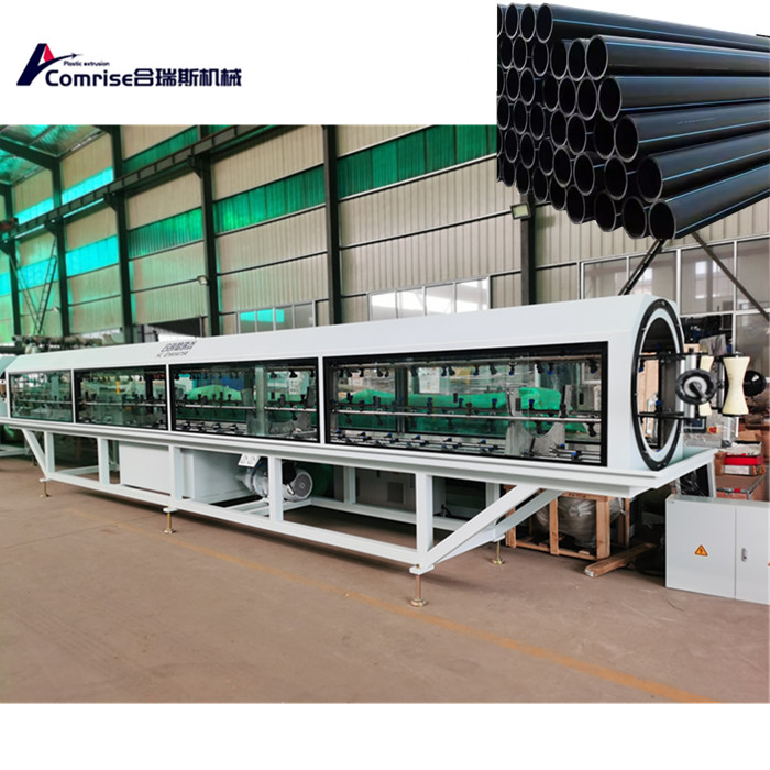 4. Ένα ειδικά σχεδιασμένο κουτί μεγέθους κενού πολλαπλών σταδίων που ελέγχει το βαθμό κενού, εξασφαλίζοντας τη σταθερότητα διαστάσεων και την στρογγυλότητα των σωλήνων HDPE και PP, ο εξωθητής και ο ελκυστήρας ελέγχονται από εισαγόμενους ελεγκτές ταχύτητας μάρκας, οι οποίοι έχουν καλή σταθερότητα, υψηλή ακρίβεια και υψηλή αξιοπιστία. Ένα ειδικό σύστημα ψύξης υψηλής πίεσης έχει σχεδιαστεί ειδικά χρησιμοποιώντας μια ελλειπτική συσκευή διόρθωσης και ένα πολυεπίπεδο σύστημα ψύξης αέρα, για να εξασφαλιστεί η εξώθηση της στάθμης σωλήνων μεγάλης διαμέτρου, υψηλής πίεσης PE.
