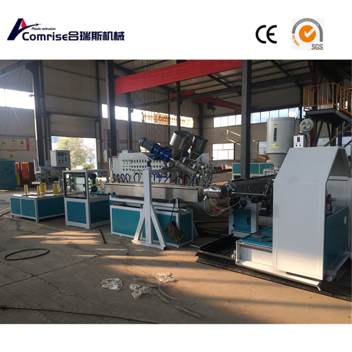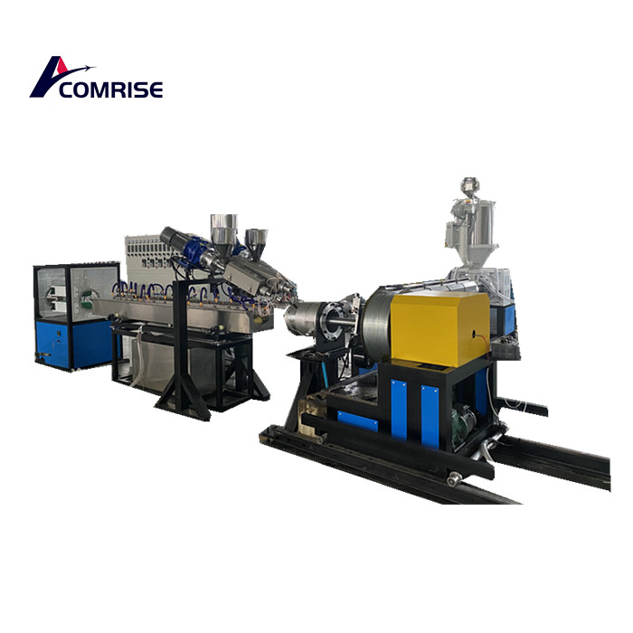 Αυτό το μηχάνημα παραγωγής σωλήνα από χαλύβδινα καλωδίων PVC χρησιμοποιείται για την παραγωγή σωλήνων ενισχυμένου καλωδίου από χάλυβα PVC. Ο τοίχος του σωλήνα είναι κατασκευασμένο από διαφανές μαλακό πλαστικό PVC, με σύρμα σπειροειδούς χάλυβα μέσα.